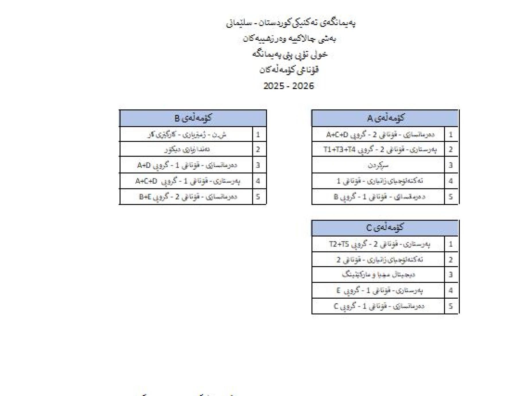 ئەنجامی تیروپشکی خولی تۆپی پێی پەیمانگە 2025 - 2026